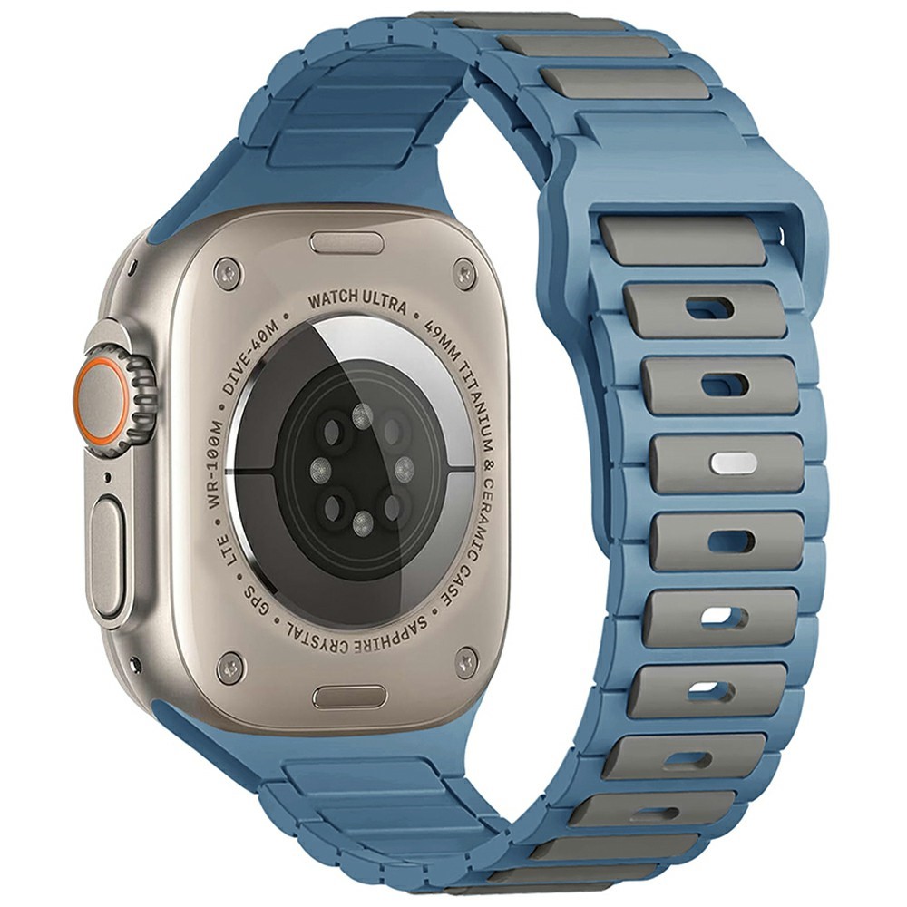 جنس بند از سیلیکون پاککنی نرم و انعطافپذیر است که روی مچ دست احساس لطیفی ایجاد میکند، در استفاده طولانیمدت باعث خستگی یا حساسیت نمیشود و در برابر عرق، رطوبت و شستوشو مقاومت بالایی دارد. طراحی چندتکه و اسپرت بند، در کنار رنگبندی متنوع و جذاب، ظاهری جسور و ماجراجویانه به اپل واچ شما میبخشد و آن را به گزینهای ایدهآل برای فعالیتهای ورزشی و استفاده روزمره تبدیل میکند.