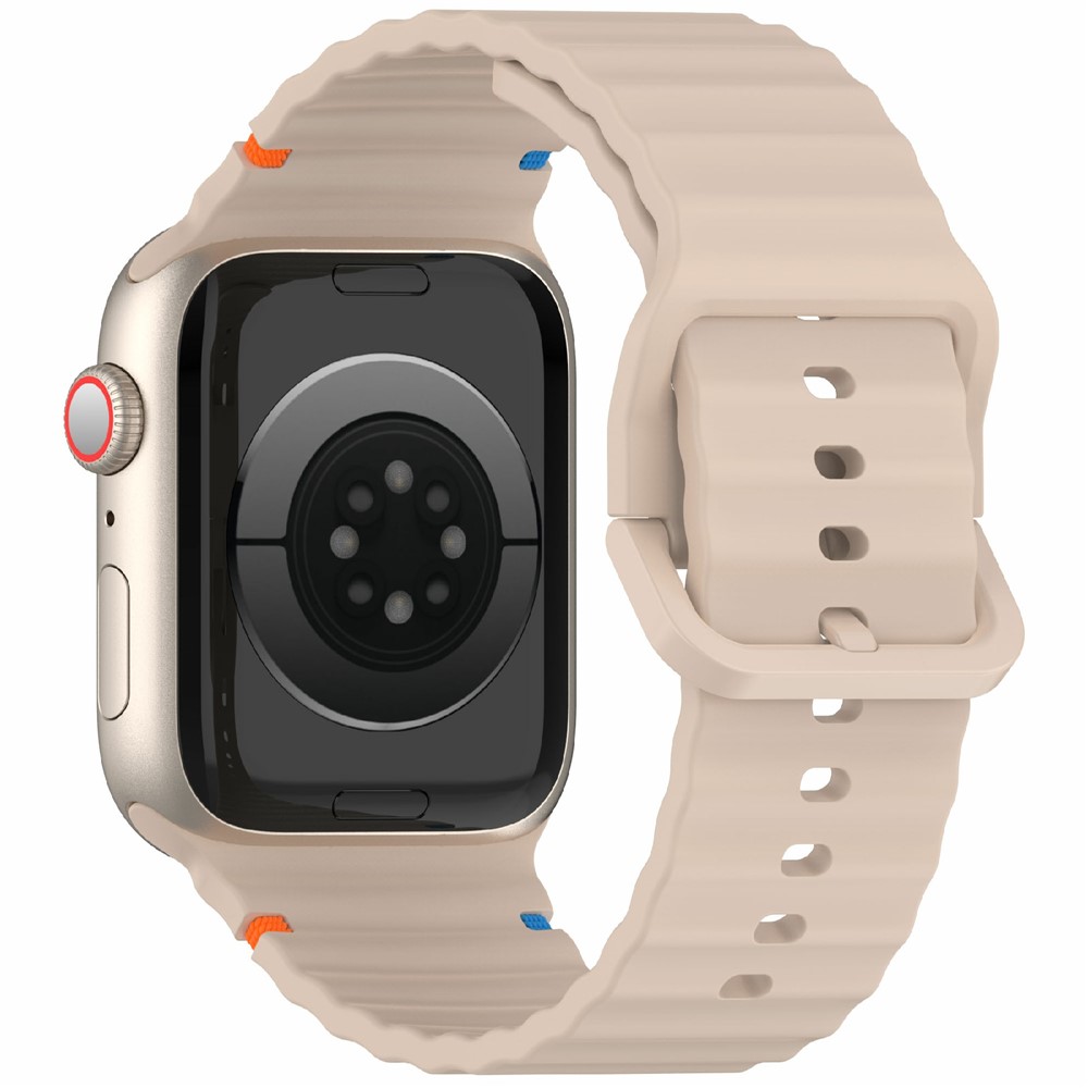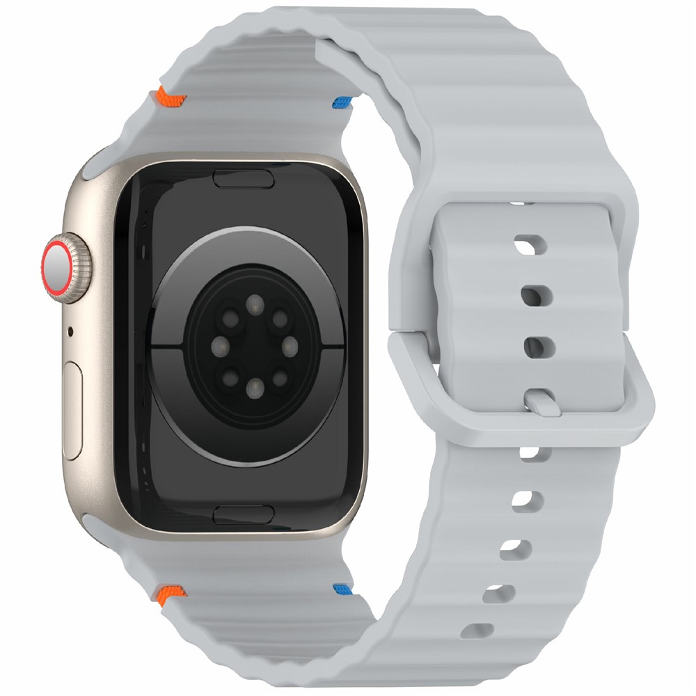 طراحی بند با سطح موجدار/شیاردار و حضور دوخت نخی نارنجی و آبی روی همه رنگها، ظاهری اسپرت و متمایز به اپل واچ شما میبخشد و آن را از بندهای سیلیکونی ساده جدا میکند. این جزئیات رنگی کوچک، در کنار رنگبندی متنوع و جذاب بند، به شما امکان میدهد استایل ساعت خود را مطابق سلیقه شخصیتان تغییر داده و بهراحتی با لباس یا دیگر اکسسوریها ست کنید.