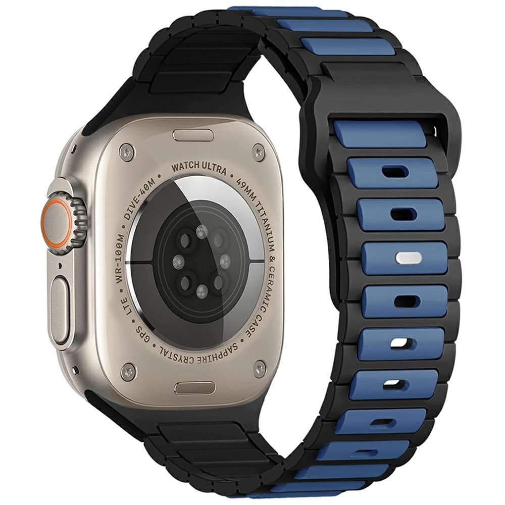 جنس بند از سیلیکون پاککنی نرم و انعطافپذیر است که روی مچ دست احساس لطیفی ایجاد میکند، در استفاده طولانیمدت باعث خستگی یا حساسیت نمیشود و در برابر عرق، رطوبت و شستوشو مقاومت بالایی دارد. طراحی چندتکه و اسپرت بند، در کنار رنگبندی متنوع و جذاب، ظاهری جسور و ماجراجویانه به اپل واچ شما میبخشد و آن را به گزینهای ایدهآل برای فعالیتهای ورزشی و استفاده روزمره تبدیل میکند.